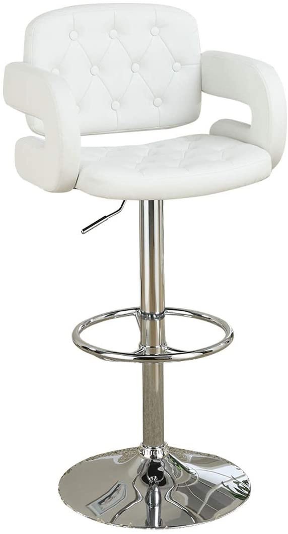 Classic Armrest Tufted White Faux Leather Upholstered Faux Leather Barstool / Chair Adjustable Height Swivel Kitchen Stools 1pc Chair