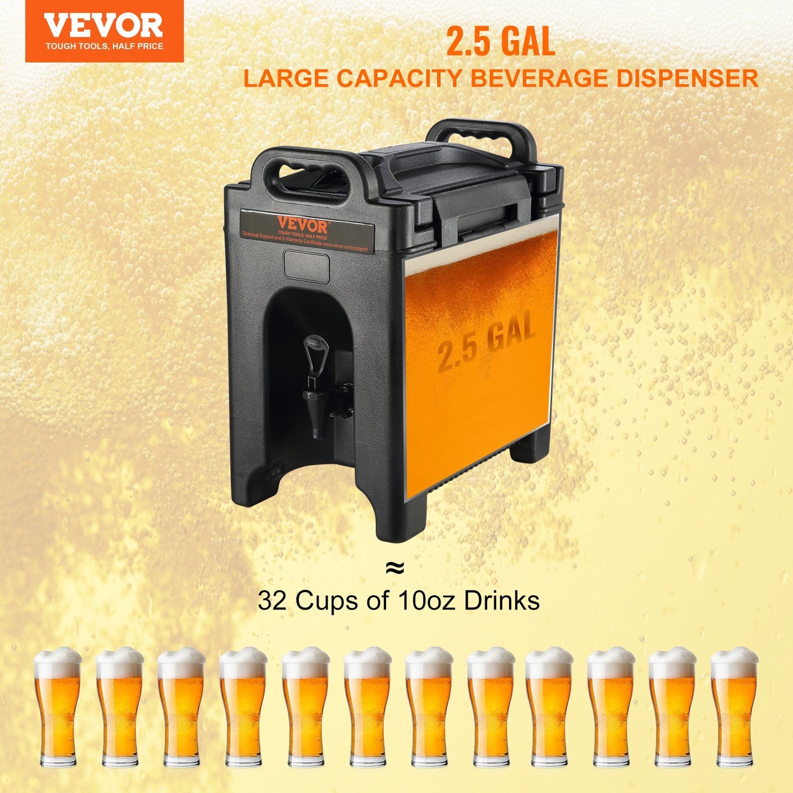 1.2.5 Gal Large Capacity: Introducing our 2.5-gallon (9.5 L) high-capacity insulated beverage dispenser, designed to keep your hot or cold beverages, such as juice, coffee, milk, and tea, at the perfect temperature. We take pride in using food-grade materials for all components that come in contact with your beverages. Experience the ultimate in beverage service quality!